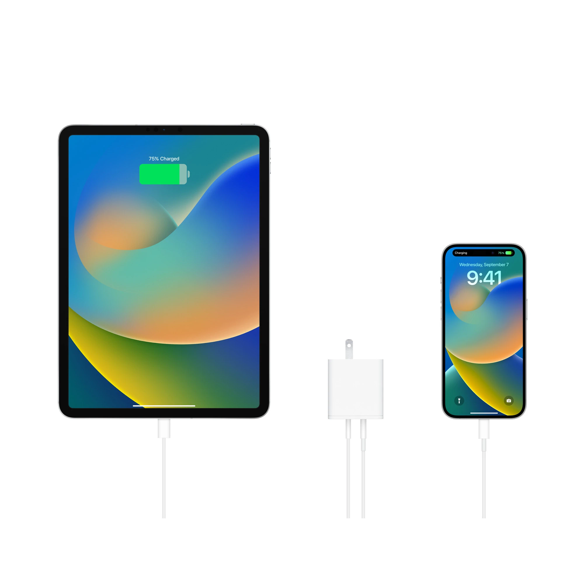 این شارژر دارای 2 پورت USB-C است و به شما اجازه میدهد دو دستگاه را بهطور همزمان شارژ کنید؛ مثلاً: