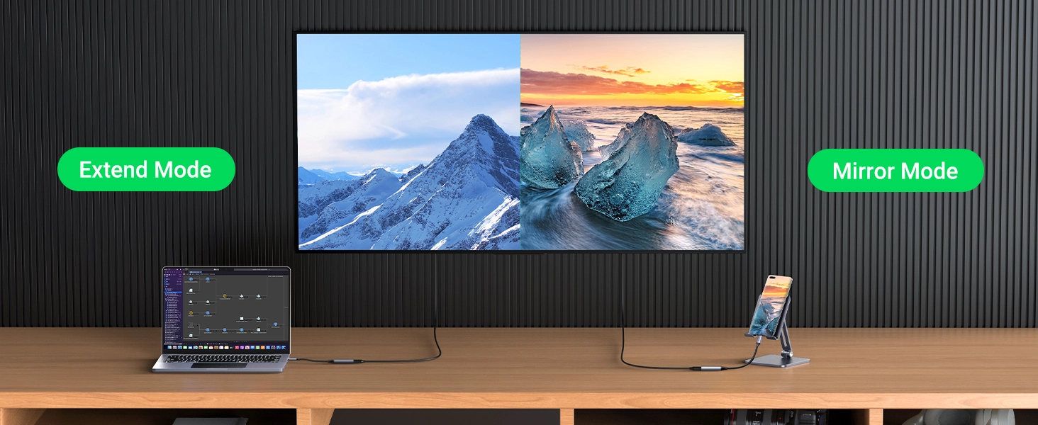 با پشتیبانی از رزولوشن 4K در نرخ 60Hz، انتقال تصویر کاملاً روان انجام میشود؛ چه در حال ارائه PPT در جلسه کاری باشید، چه بخواهید فیلمهای 4K را روی تلویزیون تماشا کنید یا حتی بازی کنید. همچنین پشتیبانی از HDCP 2.2 امکان پخش محتوای محافظتشده از سرویسهایی مانند iTunes و Netflix را فراهم میکند. برای کاربردهای معمولتر نیز خروجی Full HD 1080P بدون مشکل در دسترس است.