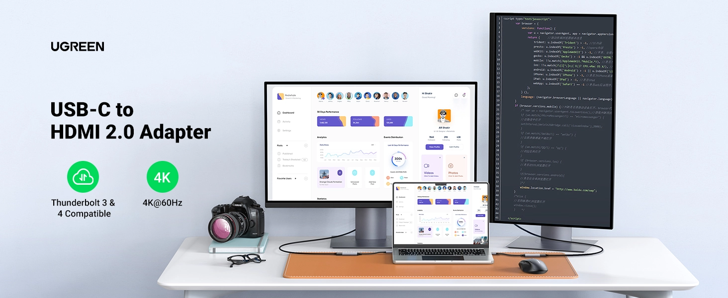 اگر بهدنبال یک راهحل مطمئن برای اتصال لپتاپ، تبلت یا گوشی مجهز به USB-C به نمایشگر یا تلویزیون HDMI هستید، UGREEN CM297 USB-C to HDMI Female Adapter انتخابی کاربردی و باکیفیت برای استفاده روزمره، اداری و حتی سرگرمی است. این آداپتور با پشتیبانی از استاندارد HDMI 2.0، تصویر را با وضوح 4K@60Hz (4096×2160) منتقل میکند و همزمان صدا و تصویر را بدون افت کیفیت روی نمایشگر بزرگتر در اختیار شما میگذارد.